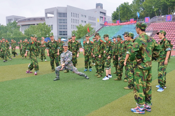 据了解,军体拳是由拳打、脚踢、摔打、夺刀、夺枪等格斗动作组合而成的拳术,共有三套军体拳。本次军训练习的是第一套,包括弓步冲拳、马步横打等16个招式。训练过程中教官们亲自示范,将整套动作分解成一招一式交给同学们,教官的动作精炼、节奏分明,同学们兴趣盎然,学习积极性很高。经过细心指导,同学们已经做得相当熟练、准确。花样队列主要有军姿、正步、变换队形等动作,在教官的严格要求下,同学们的身躯笔挺,军姿纹丝不动,正步踢得刚劲有力,各种队形变换地流畅自然。