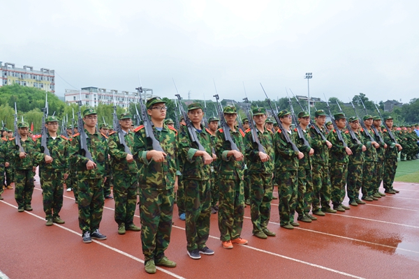 2014级新生军训已接近尾声,在最后的几天里,同学们主要训练了军体拳、花样队列、持枪操练等项目。虽然在训练间隙还伴有秋雨,但同学们的热情依然高涨,训练十分认真,丝毫没有松懈。