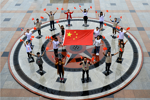 在中华人民共和国65周年华诞到来之际,有网友发起“我和国旗合个影,我为中国点个赞”活动,迅速燃起了网友们的爱国热情,短短几天内,该话题在微博上的阅读量就超过6000万。该活动在我校也受到热捧。近日,我校大学生通讯社的同学们自发开展了“我与国旗合个影 我向祖国献祝福”活动,拍摄并在微博上展示自己与国旗的合影,撰写或转发祝福祖国的话语,用鲜艳的五星红旗、最美的笑脸、最真的祝福为祖国65周年生日华诞献礼。