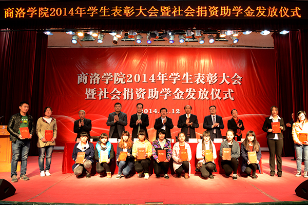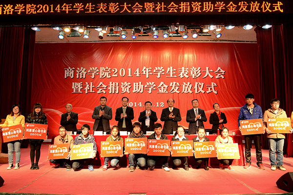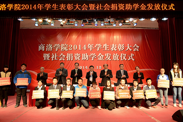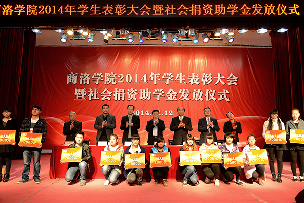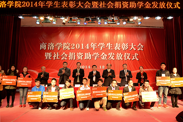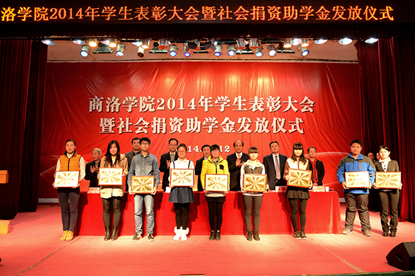 在热烈的掌声中,校领导和主席台上的嘉宾分别为受表彰先进个人和集体代表颁奖;为获得“国网商洛电力” 助学金、中国邮政“鸿雁爱心”助学金、中国联通助学金、中国电信天翼助学金的受助学生代表发放了助学金。