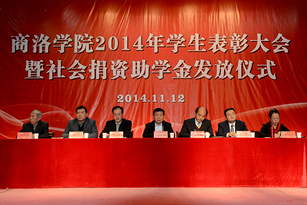 11月12日,我校隆重举办2014年学生表彰大会暨社会捐资助学金发放仪式。校党委书记张景书、校长刘建林、党委副书记左晓民,商洛供电局局长、党委副书记李琦,中国邮政商洛分公司总经理王伟、中国联通商洛分公司总经理古涛、中国电信商洛分公司总经理郝红彦出席大会。中国电信商洛分公司与我校在大会上签署了《校企合作协议书》。大会对2013至2014学年度三好学生、优秀学生干部和先进班集体进行了表彰,向受资助学生发放了社会捐资助学金。大会由左晓民主持。