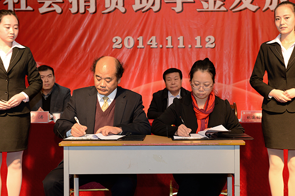 刘建林与郝红彦分别代表我校与中国电信商洛分公司在《校企合作协议书》上签字。根据协议,我校与中国电信商洛分公司在捐资助学、人才培养、履行社会责任等多个方面开展广泛合作,中国电信商洛分公司设立中国电信天翼助学基金,每年资助我校家庭经济困难、品学兼优的在校学生 20 人,每人每年2000元;我校定期组织学生到公司参观学习,并每年选派相关教师为中国电信商洛分公司业余党校授课,并为公司职工开展相关培训。