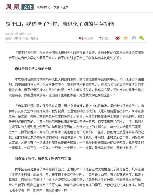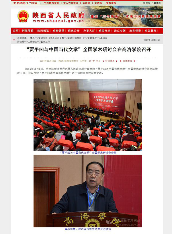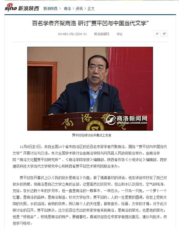 新浪:《百名学者齐聚商洛 研讨“贾平凹与中国当代文学”》