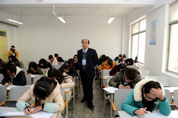1月12日至14日,校领导刘建林、王思怀、魏书堂、彭虎军、范新会、刘宝盈在学校办公室和教务处相关负责人的陪同下,视察了期末考试工作情况。
