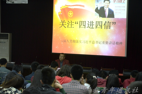 4月15日晚,校团委组织各学生组织干部召开学习习近平总书记系列重要讲话精神“四进四信”活动座谈会。校团委副书记彭晓邦为广大学生干部作了专题报告。