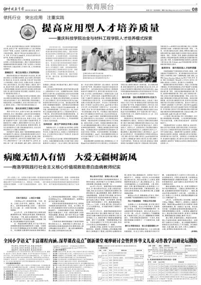 2015开年以来,全校上下在建设应用型大学目标定位引领下,紧扣“迎评促建”工作,一心一意谋发展,聚精会神搞建设,成效显著,媒体和社会关注度较高。2月14日,《中国教育报》第4版以《将社会主义核心价值观的种子播撒到师生心中》为题,对我校培育和践行社会主义核心价值观宣讲活动进行了专题报道;3月30日,《中国教育报》第8版以《病魔无情人有情 大爱无疆树新风》为题,对我校践行社会主义核心价值观救助患白血病教师王珍琪系列活动进行了报道。至此,2月到4月,《中国教育报》已经4次专题报道了我校改革发展的成就,这些文章一经刊发,人民网、新华网、中国网、中国日报网、环球网、中国青年网、网易、腾讯网等全国各大媒体纷纷转载。