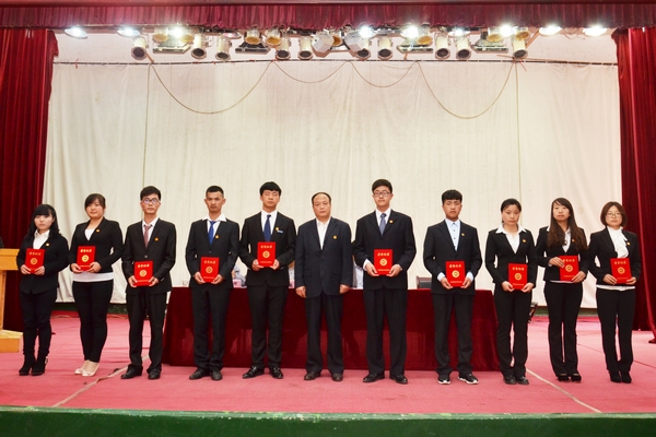 5月4日下午,我校在大学生活动中心召开2015年“五四”表彰大会,举行第十届“红五月”校园文化艺术节开幕仪式。党委委员、干部人事处处长高荣发,党委宣传部部长郭英勇、学工部部长石启英出席活动,并为受表彰的先进集体和先进个人颁奖。活动由校团委副书记彭晓邦主持。