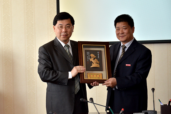 我校与台湾南开科技大学互赠了礼品并合影留念。