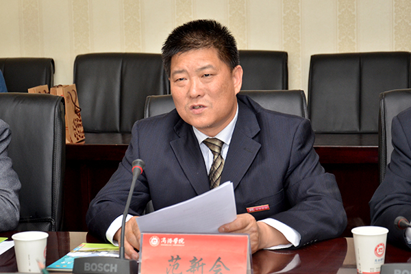 范新会代表学校在致辞中对许聪鑫一行表示热烈欢迎,并介绍了学校建设发展的基本情况、下一步的发展思路。范新会指出,南开科技大学和我校同属地方性应用型本科院校,在办学定位、服务地方经济社会发展方面有着诸多共同之处,合作基础良好,真诚希望双方不断加强合作交流。