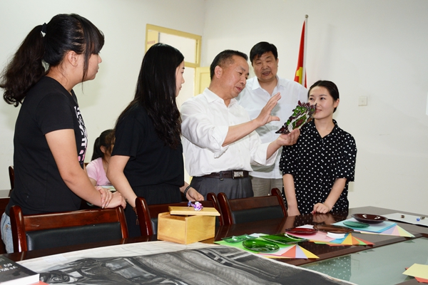 6月11日,我校在就业洽谈室举办首期赴台学生手工作品成果展,集中展出我校赴台交流学生60余件手工作品。校纪委书记王思怀在宣传部部长郭英勇的陪同下,参观了展览,并与参与制作手工艺品的学生进行了亲切交流。