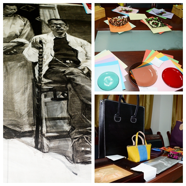 此次展出的作品主要是我校学生蒋俐、李天琦等6名学生在台湾南开科技大学和东方设计学院交流学习期间动手制作的纯手工艺作品,有珐琅制品、木刻雕塑、皮革小件、皮包,同时展出了赴台交流期间台湾师生赠送的书法、绘画、书籍、设计图等作品。这些作品都是学生们用心去捕捉、探索、记录和回味生活、酝酿幸福所创作的佳作,前来参观欣赏的师生络绎不绝。