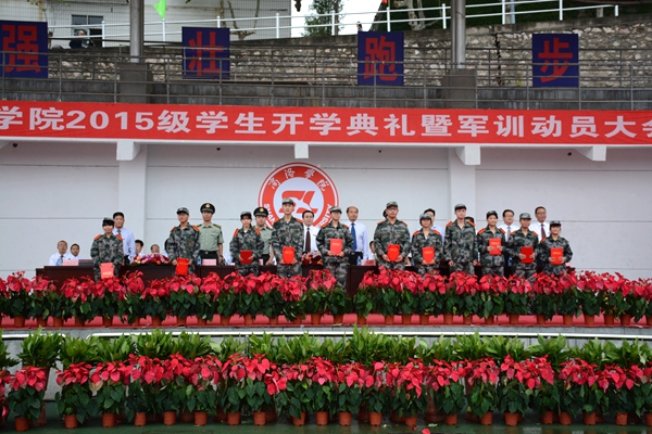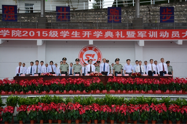 我校隆重举办2015级学生开学典礼暨军训动员大会