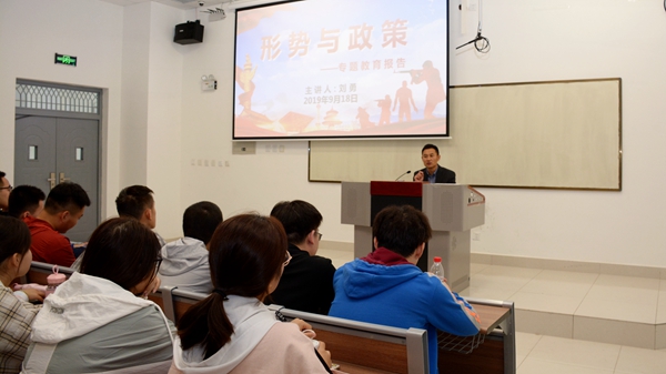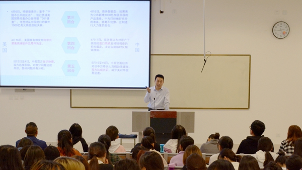 校领导们以习近平新时代中国特色社会主义思想为指导,结合青年学生成长阶段特点,融汇文史哲等多个学科知识,用深邃的历史眼光和宽广的世界视野为学生细致剖析了中美经贸摩擦的过程、本质、原因、影响、中国的立场及策略。他们用风趣生动的语言、丰富的教学案例、精美的多媒体课件,教育引导广大学子自觉肩负起时代发展大任,坚定理想信念,厚植爱国主义情怀,发扬斗争精神,增强“四个自信”,进一步把思想和行动统一到中央决策部署上来,把爱国热情转化为艰苦斗争、振兴中华的理性认识和具体行动,以学习为最大任务,在学习中增长知识、锤炼品格,在实践中增长才干、练就本领,以真才实学服务人民,以创新创造贡献国家。
