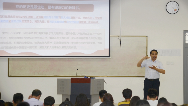 在生物学院课堂上,党委书记龙治刚以《中国共产党为什么“能”、马克思主义为什么“行”、中国特色社会主义为什么“好”》为题,从历史维度深刻阐释了百年党史的伟大和辉煌,引述《共产党宣言》等马克思主义经典文献分析了中华民族百年探索实践,阐述了马克思主义中国化的理论成果的伟大历史贡献,论证了历史和时代为什么选择了中国共产党。龙治刚要求,全体师生要深刻认识红色政权来之不易、新中国来之不易、中国特色社会主义来之不易,通过党史学习教育进一步坚定对马克思主义的信仰,对社会主义、共产主义的信念,党员干部要锤炼党性、砥砺政治品格、践履知行合一,从党的百年历史中汲取精神营养,凝聚奋进力量,以永不懈怠的精神状态和一往无前的奋斗姿态为国家富强、民族复兴、人民幸福贡献青春力量。