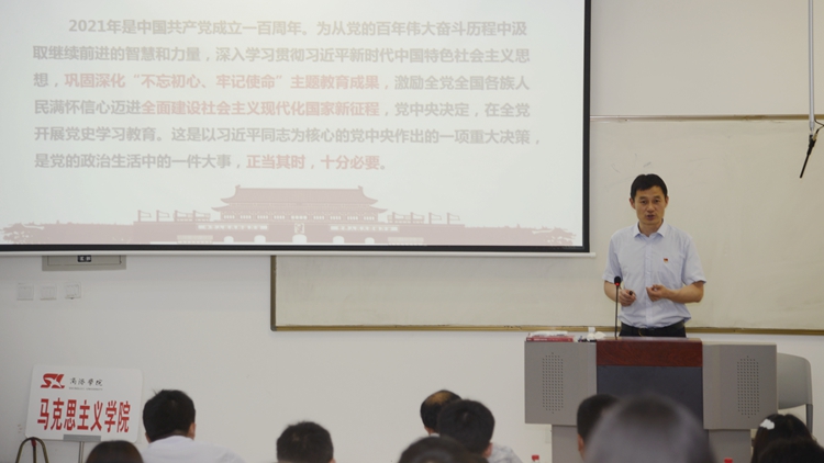 校领导彭虎军、刘勇、王新军、郭瑾在讲授中,带领同学们重温了习近平总书记在党史学习教育动员大会上的重要讲话精神,阐明“学史明理、学史增信、学史崇德、学史力行” 的目标要求,从“深入学习领会习近平总书记关于党史的重要论述、充分认识开展党史学习教育的重大意义;认真研读党史基本著作、全面了解中国共产党百年辉煌;深刻把握党史学习教育的重点;学懂弄通做实习近平新时代中国特色社会主义思想,增强‘四个意识’、坚定‘四个自信’、做到‘两个维护’”等四个方面作了深入浅出的讲解。引导同学们把学党史和悟思想贯通起来,自觉以习近平新时代中国特色社会主义思想特别是习近平总书记关于党史的重要论述为根本遵循,树立正确党史观,准确把握党的历史发展的主题主线、主流本质,理清党史重大事件、重要会议、重要人物,深刻理解“中国共产党为什么能、马克思主义为什么行、中国特色社会主义为什么好”,树立正确的世界观、人生观和价值观,把实现个人价值、奋斗目标、人生理想和国家的前途命运结合起来,坚定理想信念,立大志、明大德、成大才、担大任,努力成为堪当民族复兴重任的时代新人。