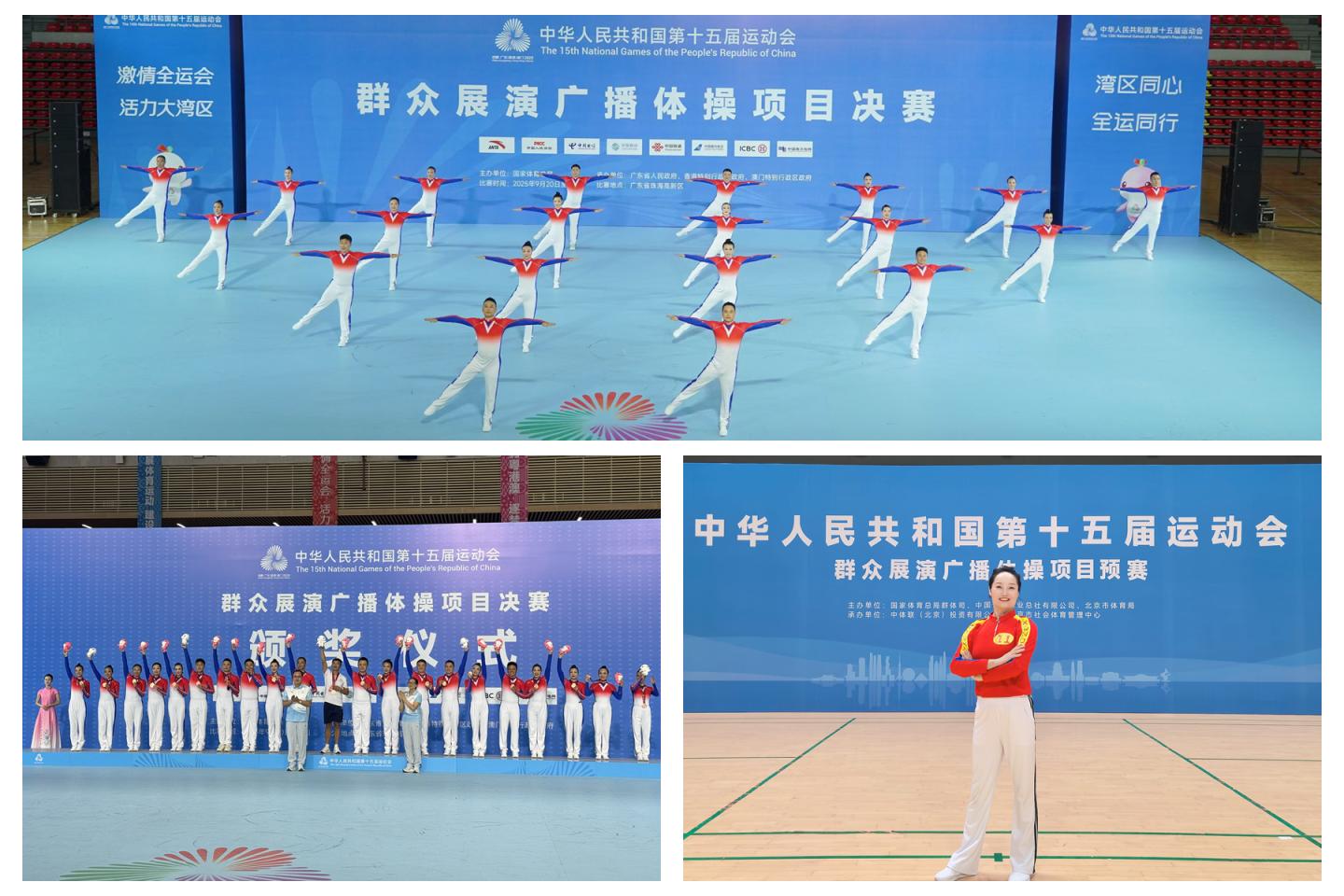 全国运动会是我国规格最高、规模最大的综合性体育赛事。本届赛事首次将群众展演项目纳入决赛环节,竞争尤为激烈。张玉兰老师作为我校体育教学领域的骨干教师,始终怀揣对体育事业的无限热忱,深耕教学一线。在备战全运会期间,她克服困难,利用业余时间刻苦训练,与团队成员默契配合,将广播体操的力量与美感完美融合,最终在国家级赛场上精彩绽放。