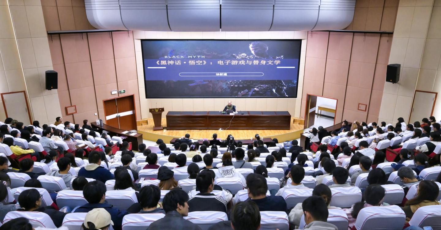 10月25日,商洛学院“商苑金秋学术季”活动举办第4场高水平学术报告会。四川大学教授、博士生导师徐新建应邀来校作《黑神话·悟空:电子游戏与替身文学》专题报告。校长权雅宁教授与人文学院400余名师生一同听取报告。