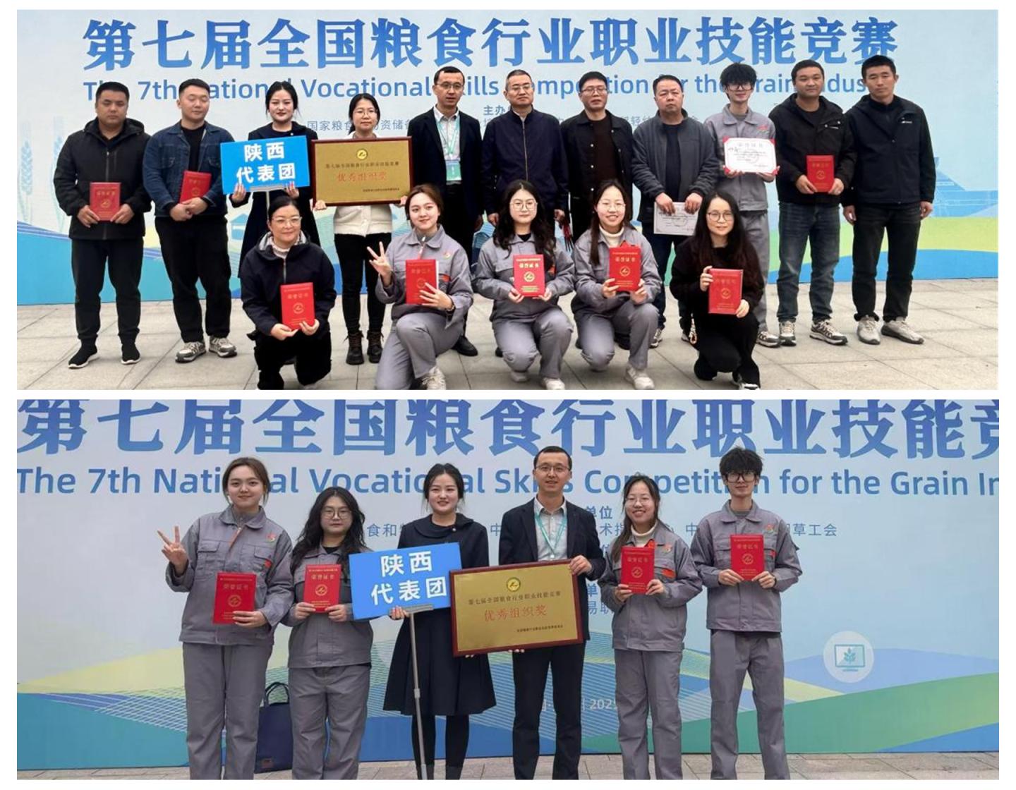 近日,以“砺炼精湛技艺,守护大国粮仓”为主题的第七届全国粮食行业职业技能竞赛在河南郑州举办,我校生物学院院长赵永平、教师鲁婷带领粮食工程专业学子参赛。参赛选手凭借扎实的理论功底、娴熟的实操技能与稳健的竞技状态荣获团体“优秀组织奖”、4项本科学生组“优秀选手”奖,助力陕西代表队在全国粮食行业职业技能竞赛中实现新突破。