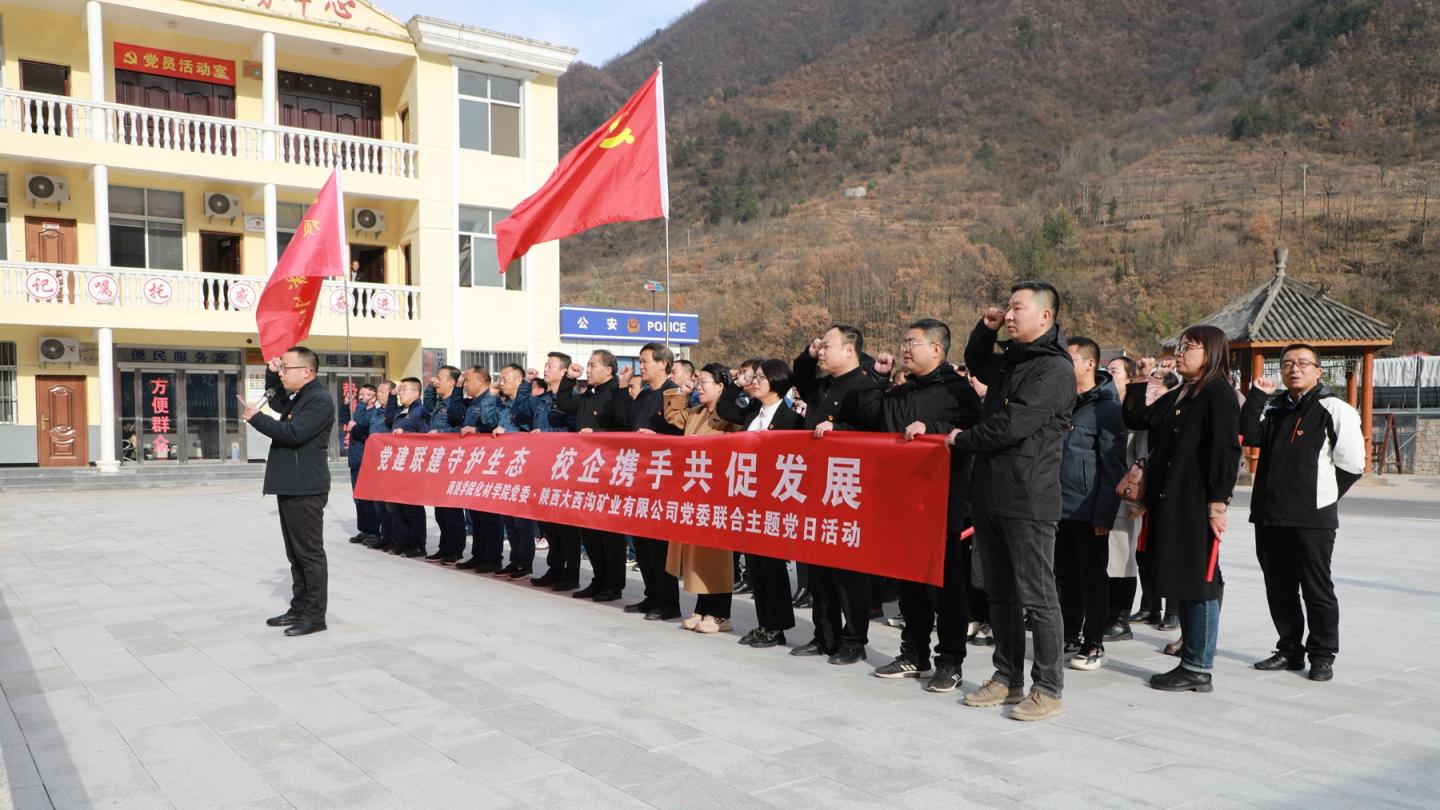 为深入践行“两山”理念,打造党建共联共建校企合作新模式,11月29日,化材学院党委与陕西大西沟矿业有限公司党委在柞水县金米村联合开展“党建联建守护生态 校企携手共促发展”主题党日活动。副校长王新军出席活动。陕西大西沟矿业有限公司全体党员,我校组织部工作人员,化材学院全体教师党员和校企联合技术攻关临时党支部全体党员参加活动。