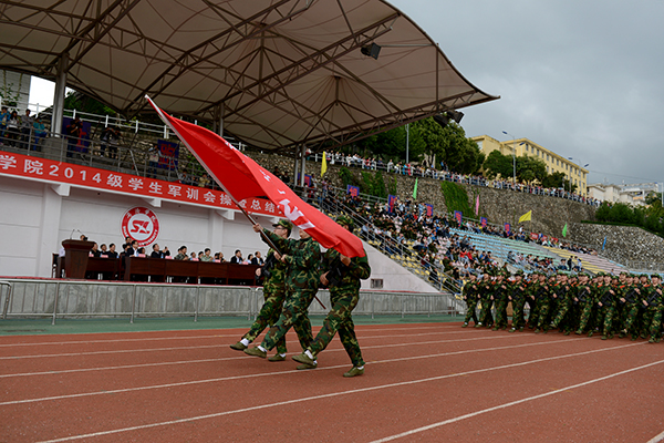 9月18日,我校隆重召开2014级学生军训会操暨总结大会,全体2014级学生以分列式、刺杀操、花样队列和军体拳表演等形式展示了他们半个月来的军训成果。校领导张景书、刘建林、左晓民、王思怀、魏书堂,解放军西安政治学院副院长赵岁步大校,2014级学生军训团团长、解放军西安政治学院杨定友大校,学生军训团政委、校学生处处长、人武部部长石启英,商州区委常委、商州区武装部政委张翔观看了会操表演并为受表彰的军训先进集体和个人颁奖。各院(部)、各职能部门主要负责人,2014级学生辅导员参加了大会。大会由副校长魏书堂主持