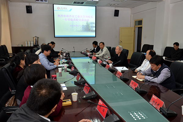 9月17日上午,西安工业大学校长刘卫国携来到我校,介绍硕士研究生招生政策,共商研究生培养合作事宜。校党委副书记左晓民热情接待了刘卫国校长,并就研究生工作进行了座谈交流