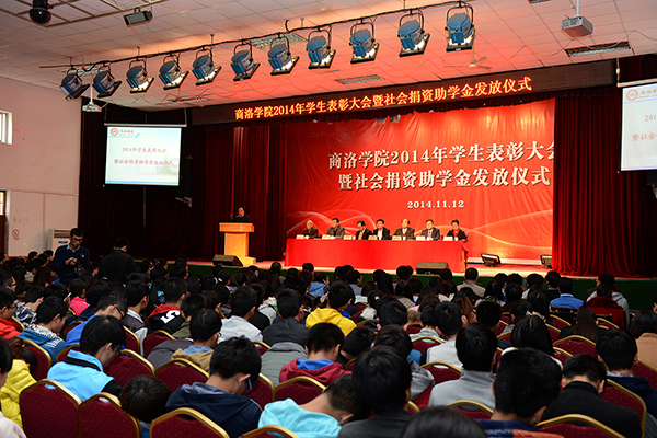 11月12日,我校隆重举办2014年学生表彰大会暨社会捐资助学金发放仪式。校党委书记张景书、校长刘建林、党委副书记左晓民,商洛供电局局长、党委副书记李琦,中国邮政商洛分公司总经理王伟、中国联通商洛分公司总经理古涛、中国电信商洛分公司总经理郝红彦出席大会。中国电信商洛分公司与我校在大会上签署了《校企合作协议书》。大会对2013至2014学年度三好学生、优秀学生干部和先进班集体进行了表彰,向受资助学生发放了社会捐资助学金。大会由左晓民主持